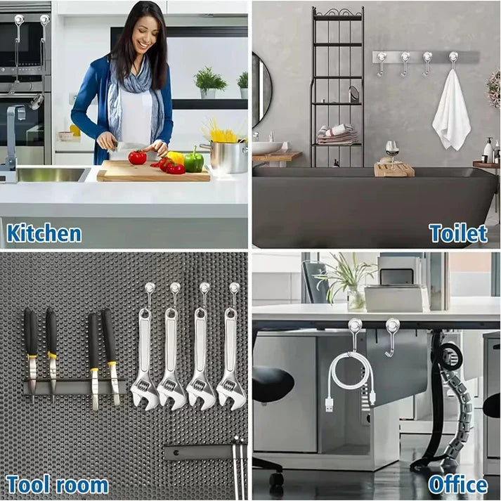 The swinging hook design allows flexible positioning, making them ideal for organizing kitchens, refrigerators, offices, garages, classrooms, and workshops. Simply attach them to any ferrous metal surface and reposition as needed—no tools required.